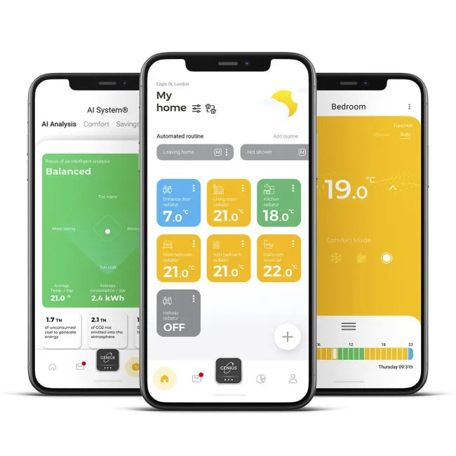 The Advanced Artificial Intelligence heating system uses AI learning to recommend ways to increase your comfort and optimize consumption.